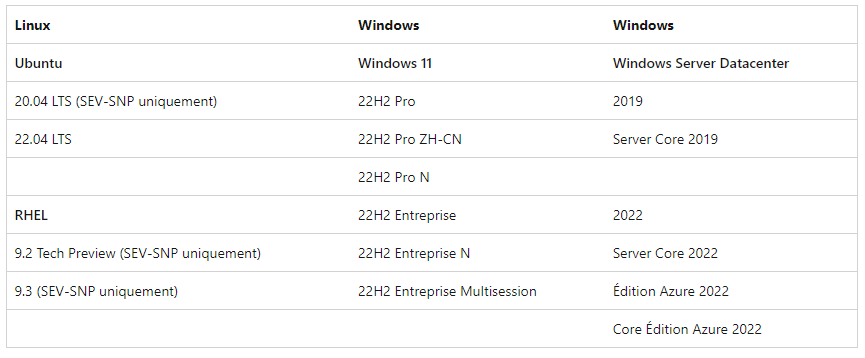 Les machines virtuelles confidentielles prennent en charge les OS suivants :